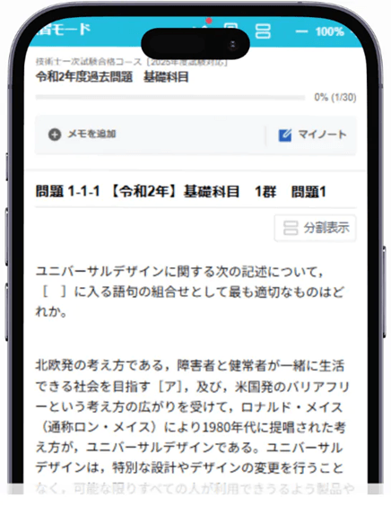 移動時間などのスキマ時間で問題演習を行いながらでも、重要なポイントを確認することができます。