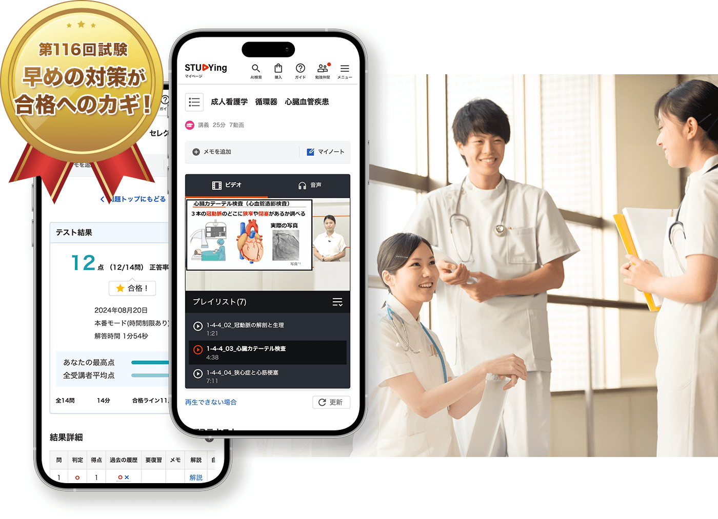 スタディング 看護師国家試験講座では、従来の受験生の苦労を解消する"続けられる"学習システムをたくさん搭載しています。 |