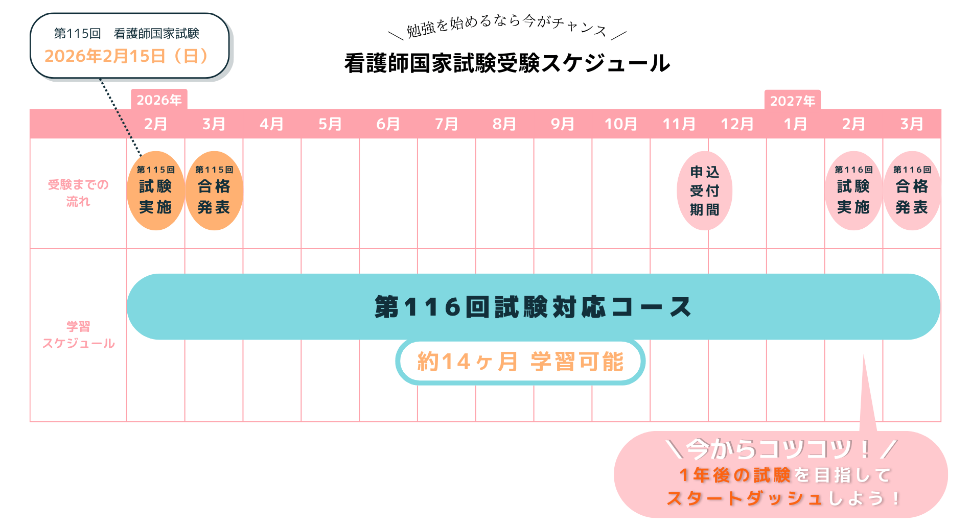 受験年度以外の方でもご受講いただくことは可能です。 ただし、受講期限は3月末まで(看護師国家試験終了後の1カ月後)となっていますので、受講期限終了後も引き続きのご受講をご希望される際は、再度コースをご購入いただくことが必要となります。 |