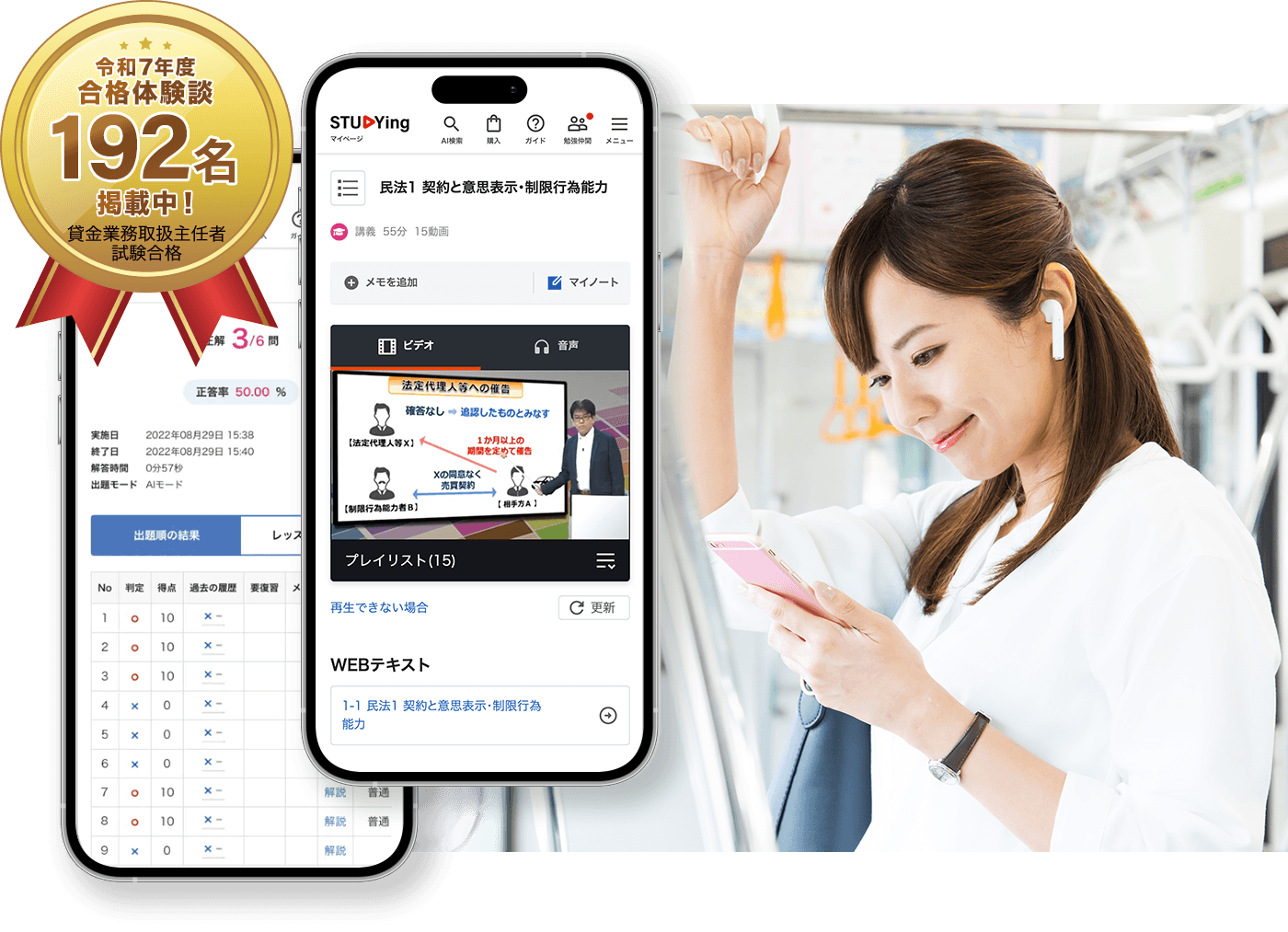 スタディング 貸金業務取扱主任者講座へようこそ。
