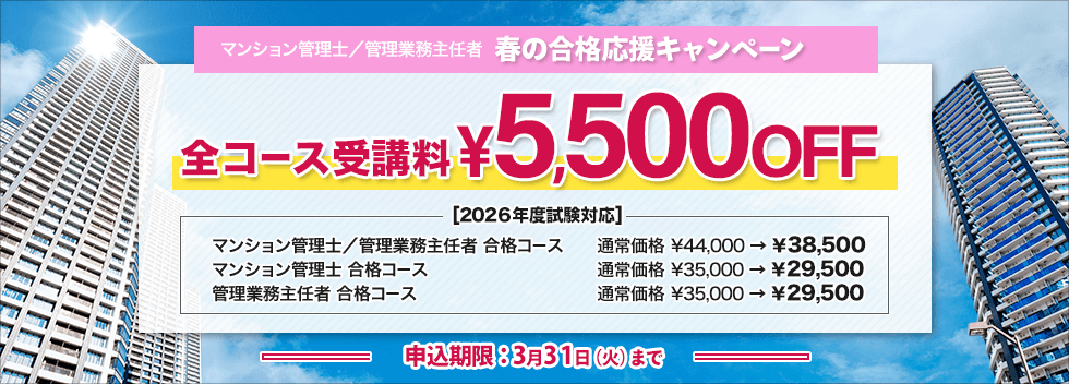 マンション管理士試験/管理業務主任者試験合格を目指す皆様は、ぜひ、無料講座をお試しください。