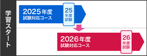 本コースでお申込みされた場合は、現在順次リリース中の2025年度版講座に加えて、順次リリースの2026年度版講座(2025年2月~2026年5月に順次リリース予定)も受講することができます。